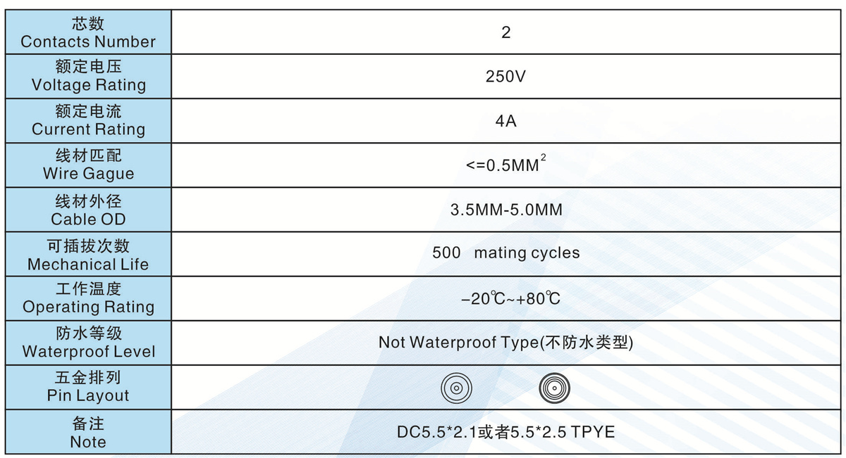芯數(Contacts  Number):   2 芯